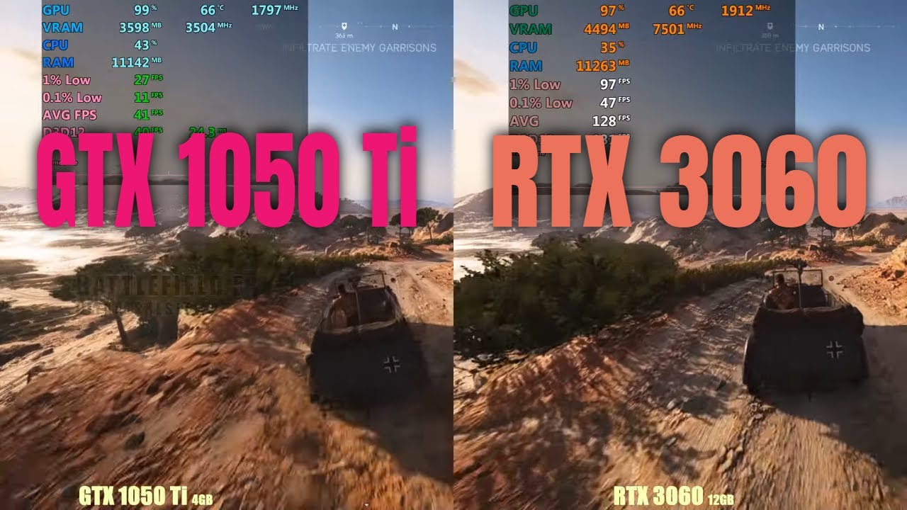 데스크탑용 1050Ti와 3060 비교시 프레임 차이는 최소 2배 이상입니다. (대략 3배라 보시면 됩니다.)