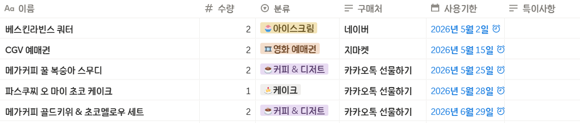 그래서 저는 기프티콘을 살 때 Notion에 정리해두고,