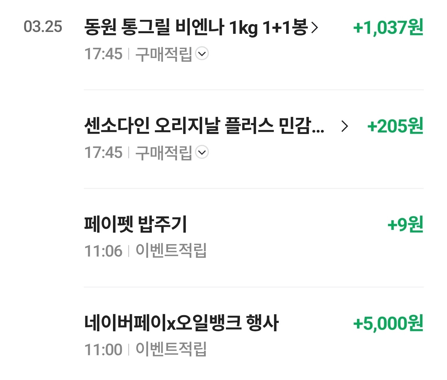 저는 간편 결제 내역이 뜨지 않아 포인트랑 이벤트 적립