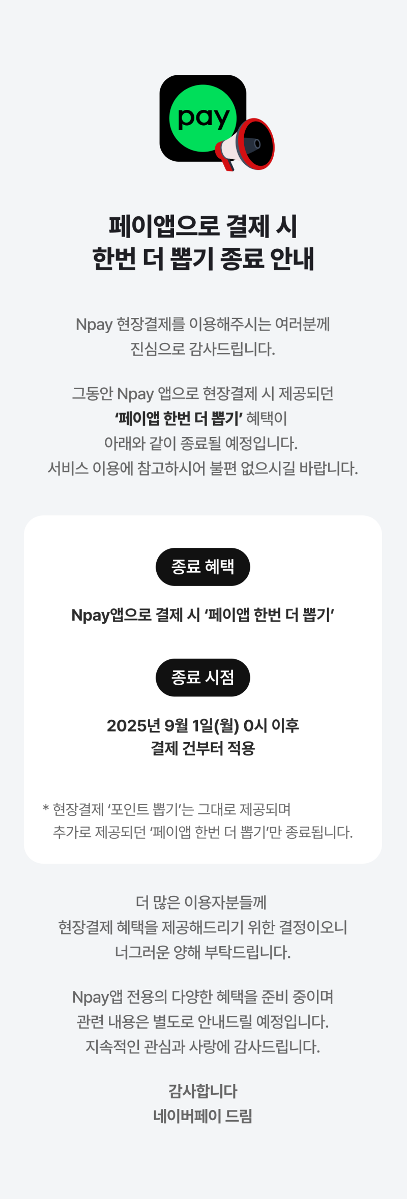 기존의 '현장결제 시 뽑기 1회’는 유지