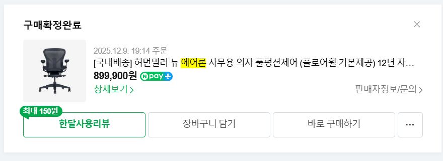 저도 작년에 지른 것 중에 가장 잘 산 게 에어론이었습니다. 흑우라 정발로 샀지만요…