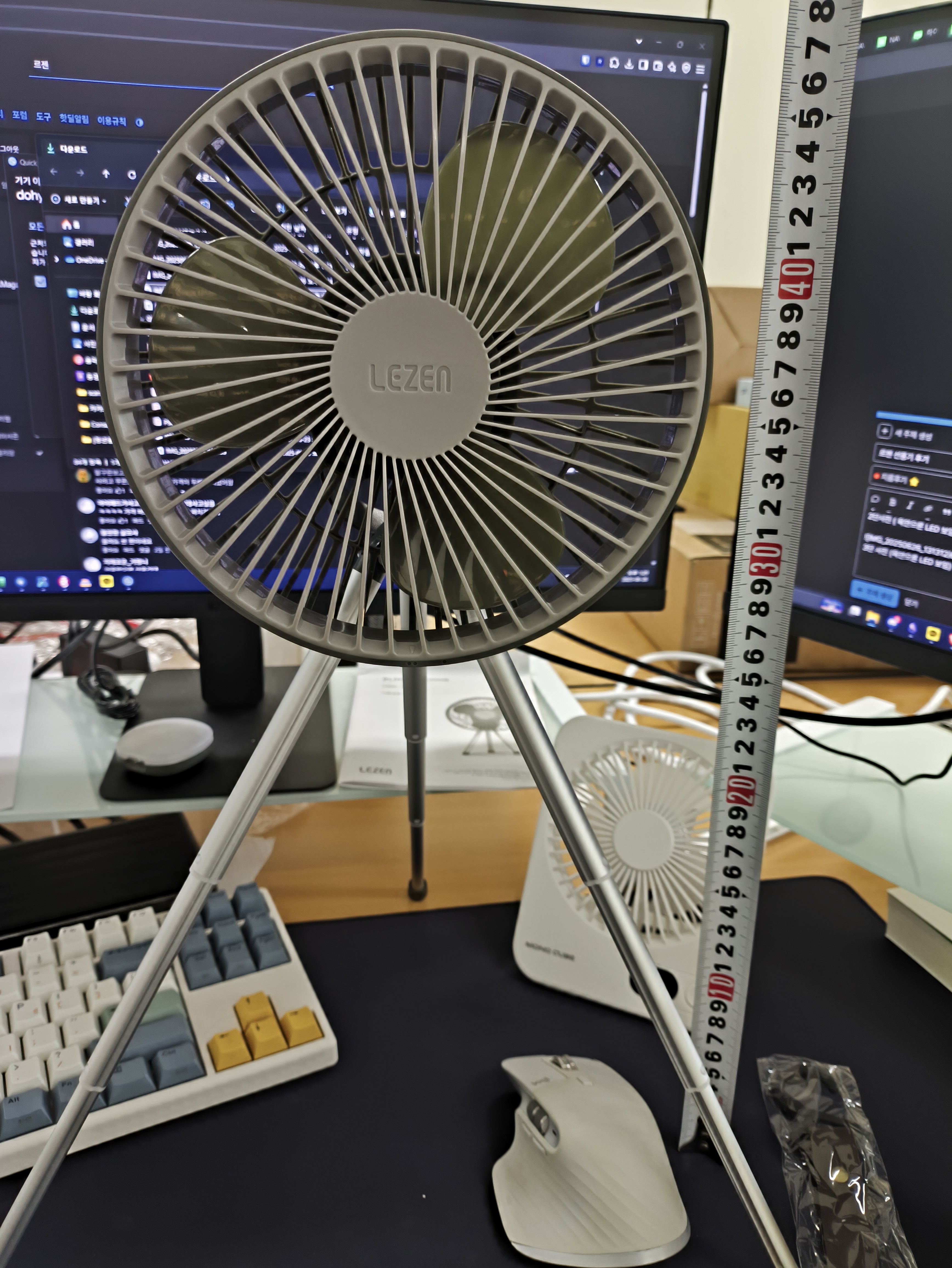 그래서 지금 어떻게 쓰냐면 책상엔 다이소 5천원 짜리, 제 자리 뒤에 에어컨 쪽에서 켜놓고 바람 끌어오고있습니다