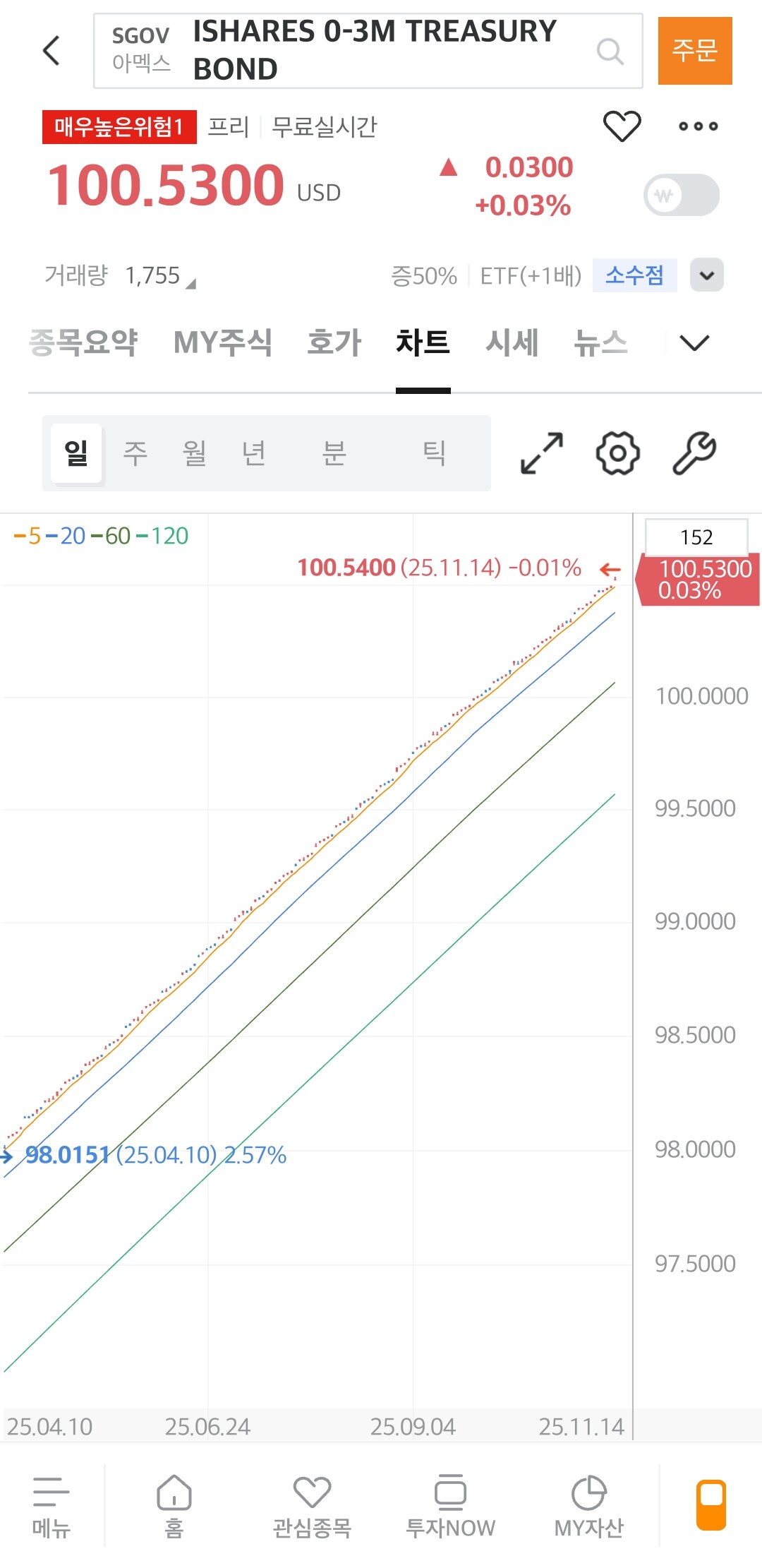 근데 환차손 환차익은 발생하겠네요. 근데 usdkrw 숏은 없고 달러인덱스 숏 티커 UDN도 소수점 지원을 안하니 좀 갠적으론 애매하달지..