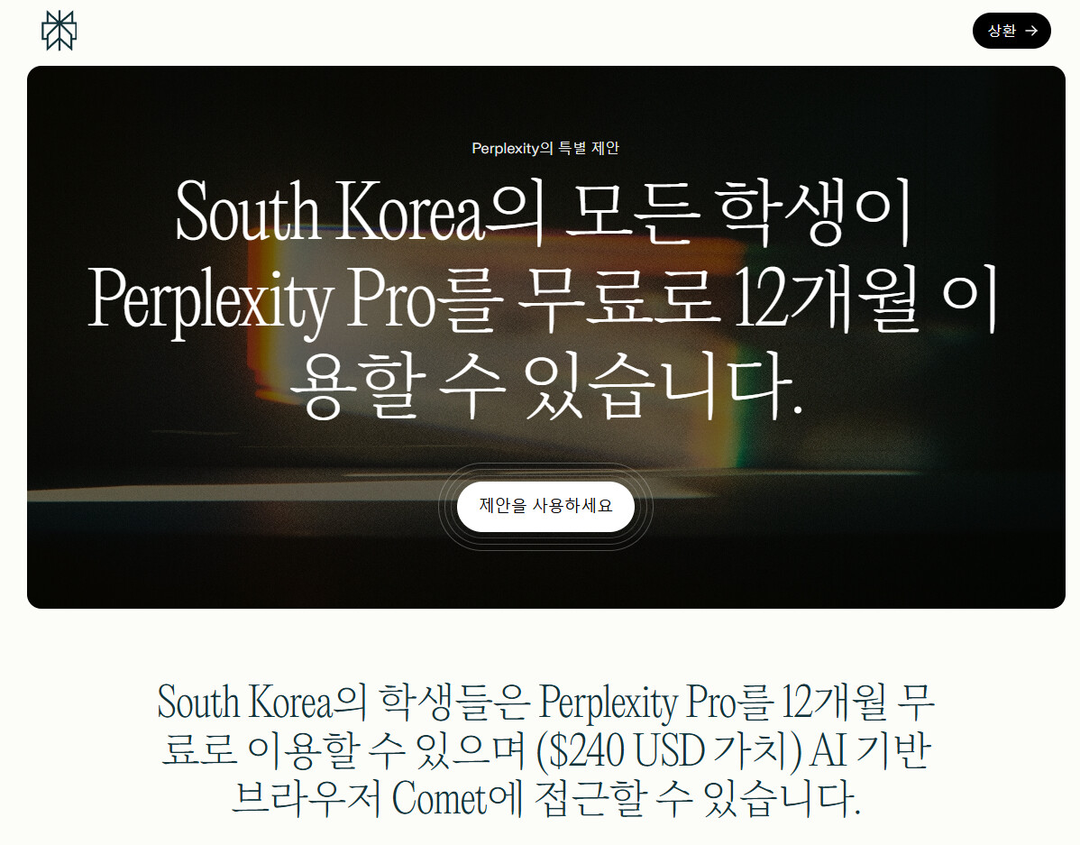 퍼플렉시티 AI에서 COMET 출시하면서 학생 복지혜택 1년 무료도 제공하나봅니다.