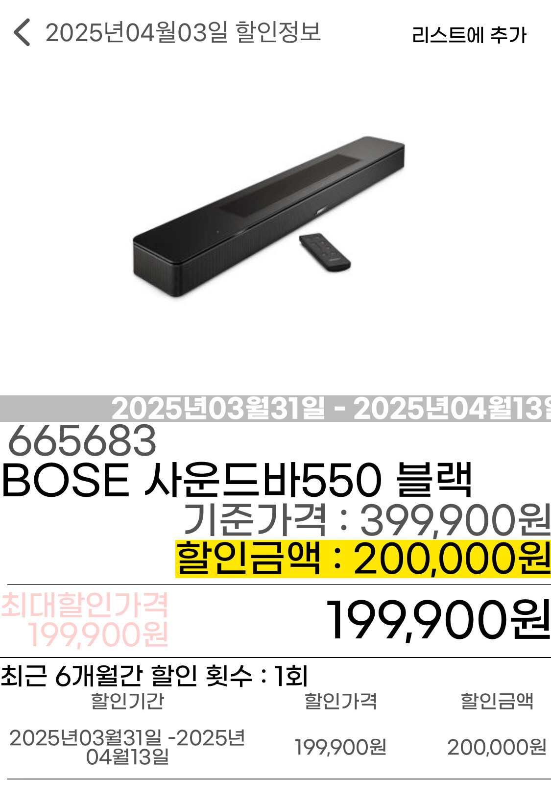 돌비 애트모스를 지원하는 보스 사운드바가 21만입니다.