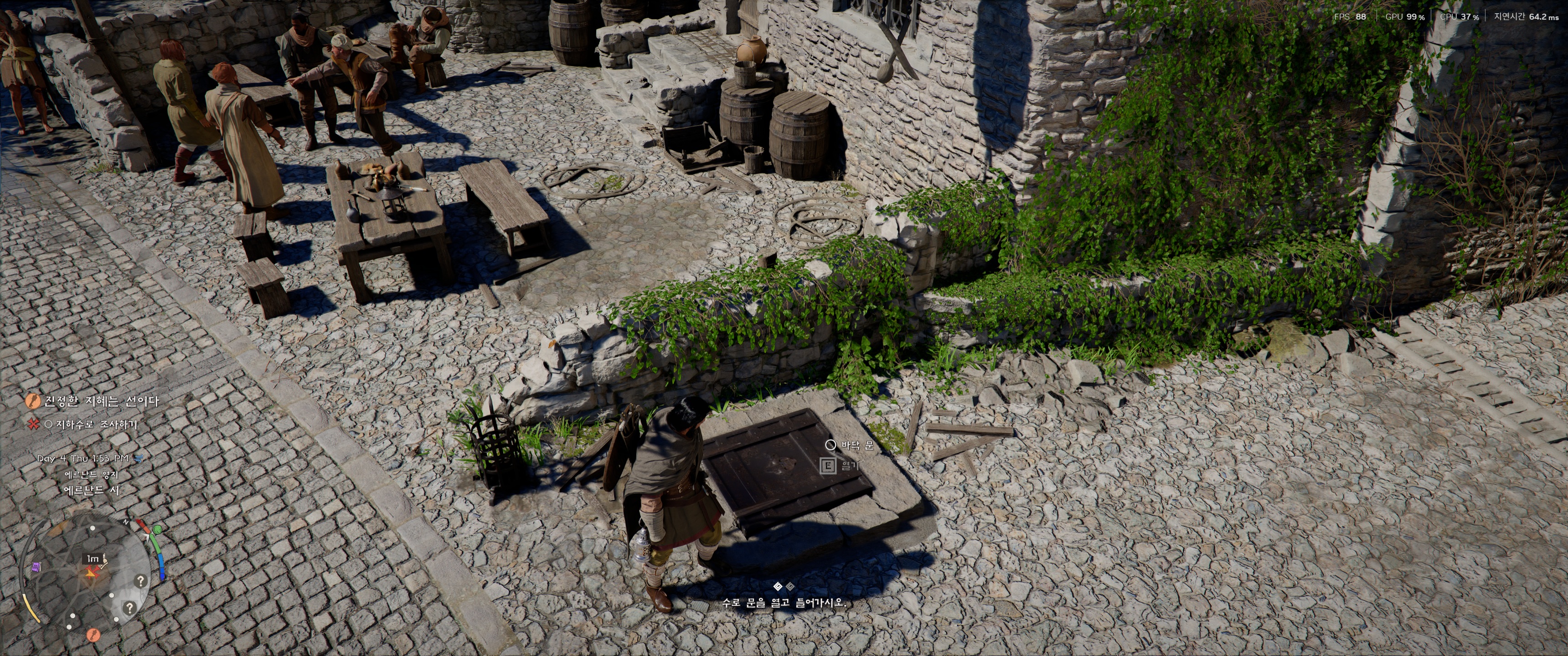 물리엔진 - 애매합니다. 좋은데 좀 애매합니다. 낚시하다 공중에 떠 있는 것처럼 서있기도 하고 비비기 뚫기도 되긴 합니다. 어떤 npc는 부딪히고 어떤 npc는 뚫고 지나갑니다. 컷씬 기준인지 잘 모르겠습니다.