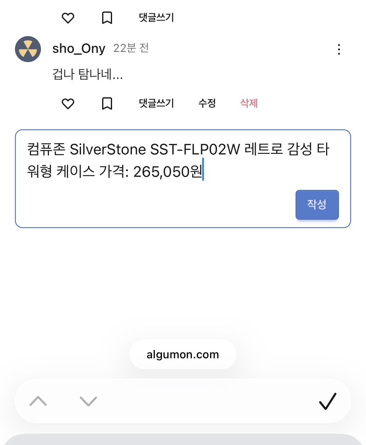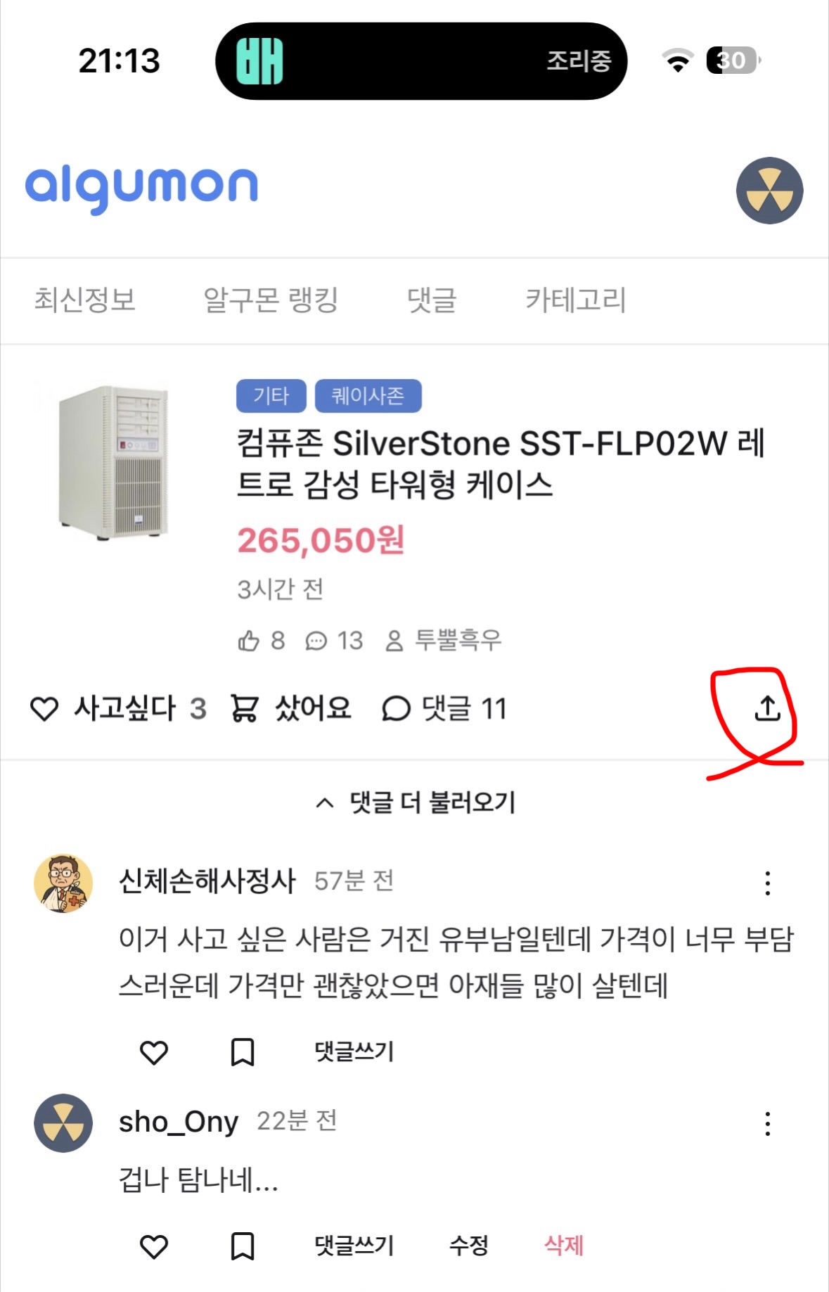 요기서 공유하기 눌러서 주소를 복사한 다음 알구몬 댓글창에 붙여넣기하면