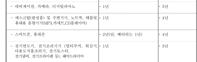 휴대폰,스마트폰 부분의 의무 기간이 4년으로 측정되있는걸로 되있습니다