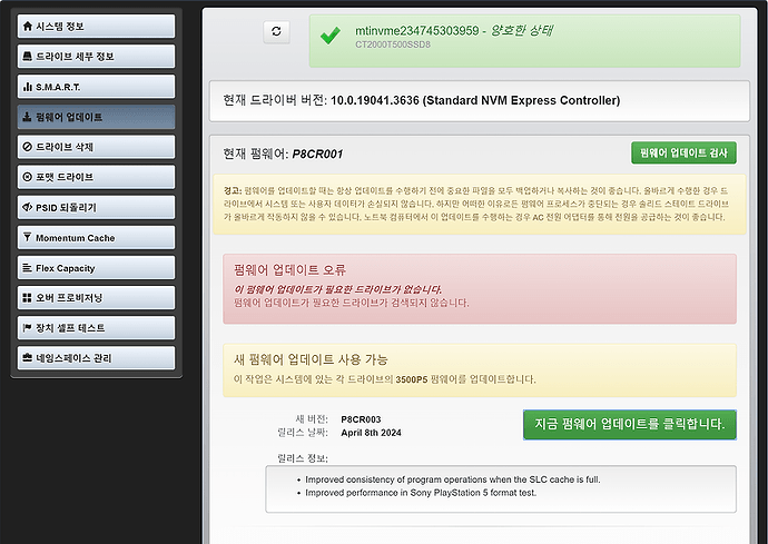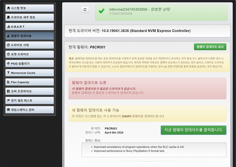 저도 정발 980pro 2tb짜리가 전조증상(블루스크린)을 보이고