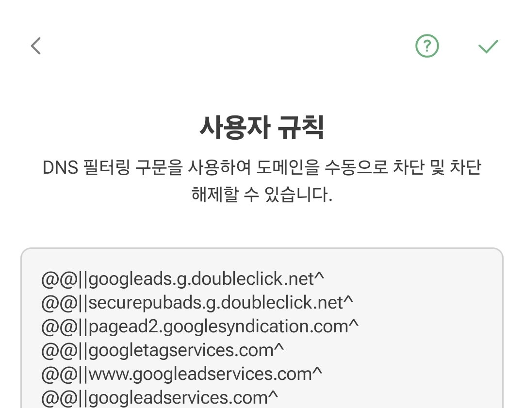 기본 애드가드 허용 목록이랑 dns서버 허용 설정에서