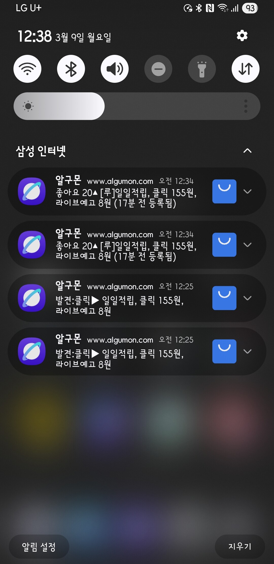 이후부터는 같은 알림이 3개씩 옵니다 ㅠ