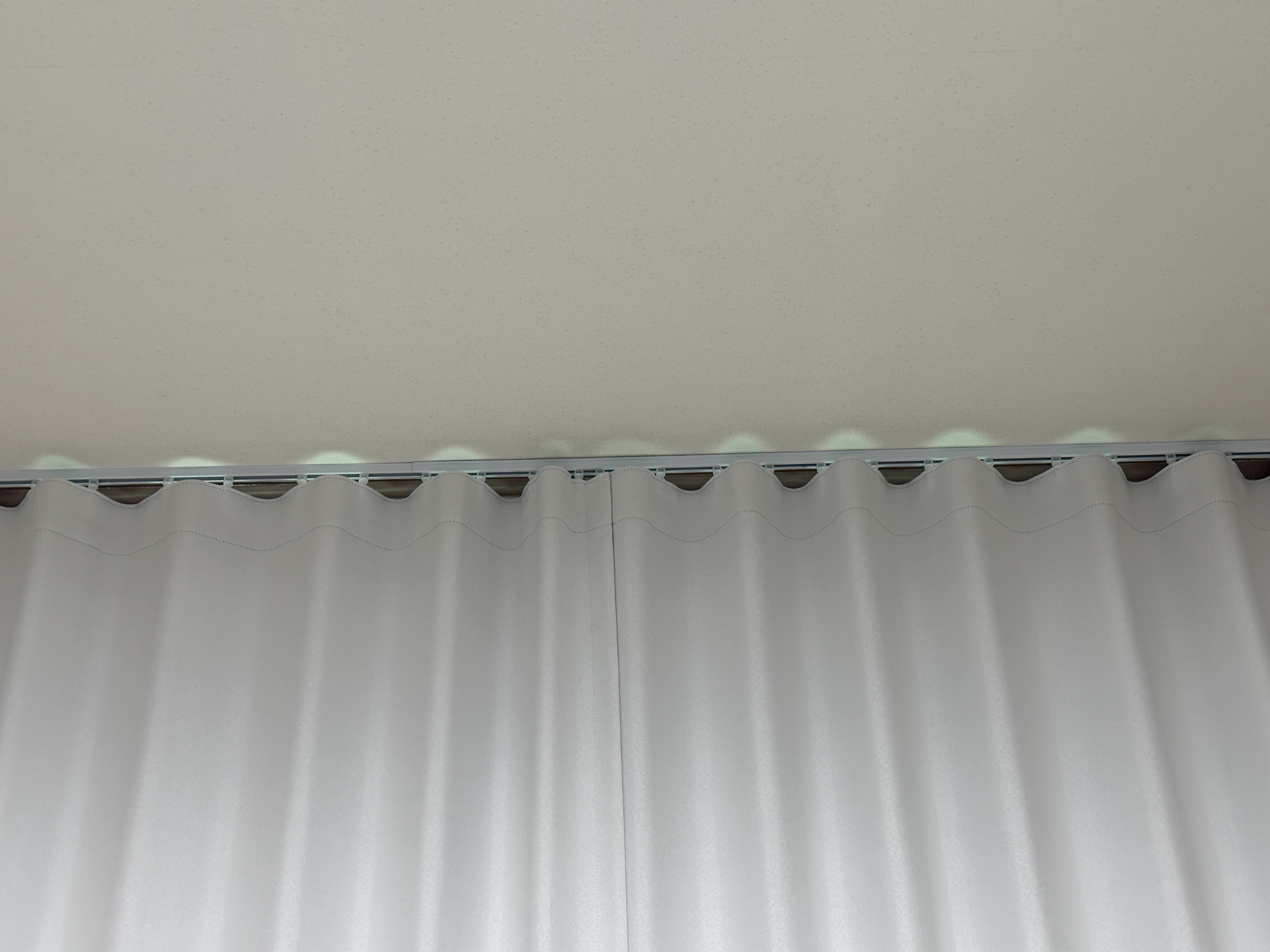 대개 폭의 1.5~2배 정도 길이로 맞춰야 주름이 예쁘게 잡힌다고 하는데, 주름이 잡히면 고 사이로 저렇게 빛이 샙니다. 그렇다고 폭에 딱 맞추기엔 그냥 천때기 걸어놓은 느낌일거라 그건 그거대로 별로겠지만요. 뭐 이건 커튼박스가 있다면 문제되는 부분은 아닙니다.
