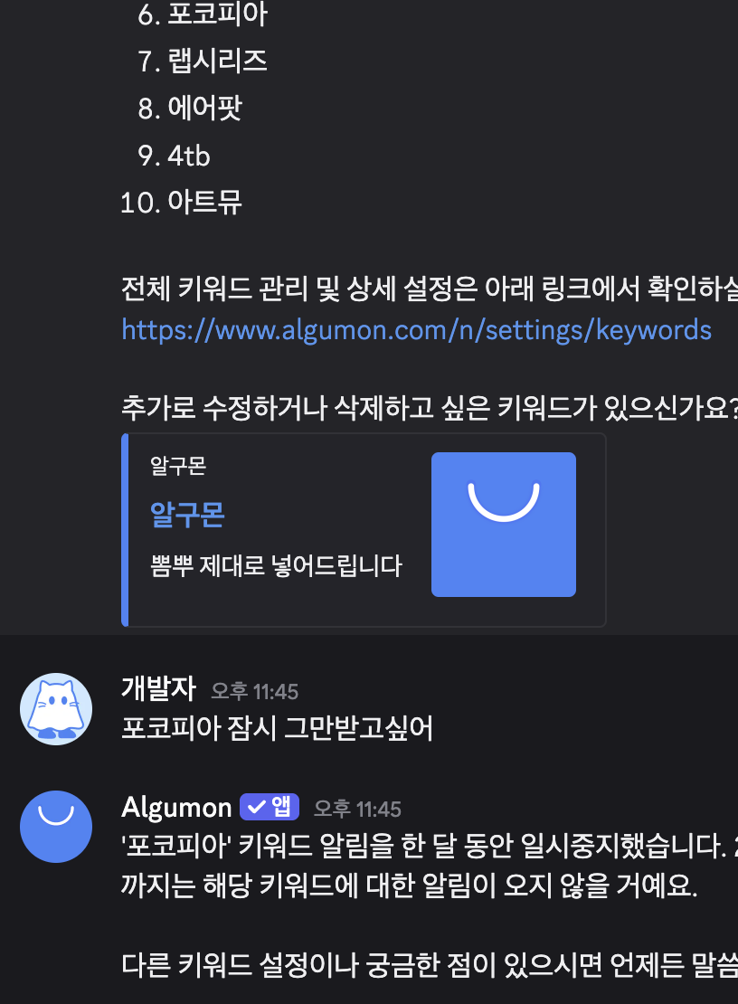 ps. 답변 품질이 안좋게 느껴지시는 경우 알려주세요!