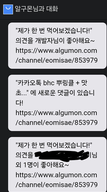 또 알구몬을 즐길수 있게 많은 노력을 해주시는 개발자님께 감사드립니다.