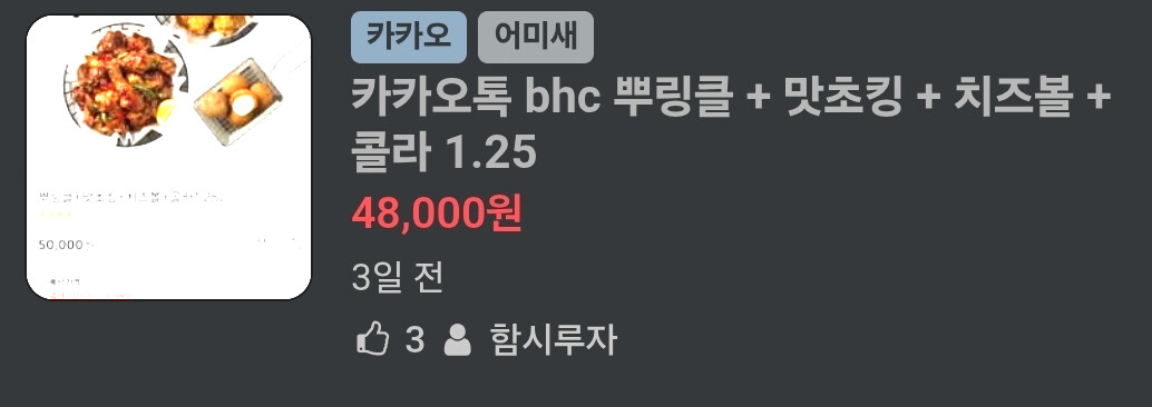 여느때와 같이 평화로운 알구몬을 탐방하던 중… BHC 치킨 딜이 나와서 호기롭게 먹어보겠다는