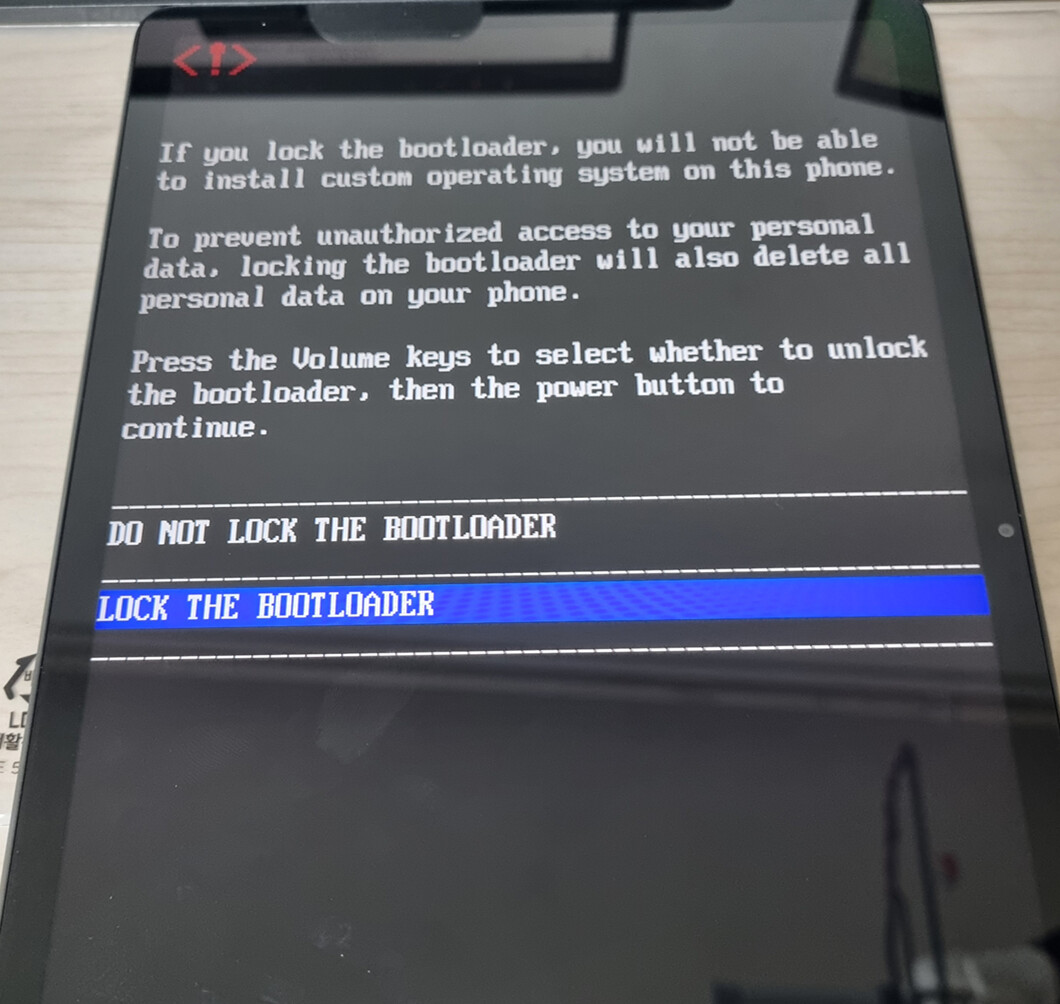 3…2…1! 부트로더 락을 확정짓는 순간, 온세상의 소리가 사라졌습니다. 패드의 화면만이 깜빡거리며 저에게 말을 거는 듯 했습니다.