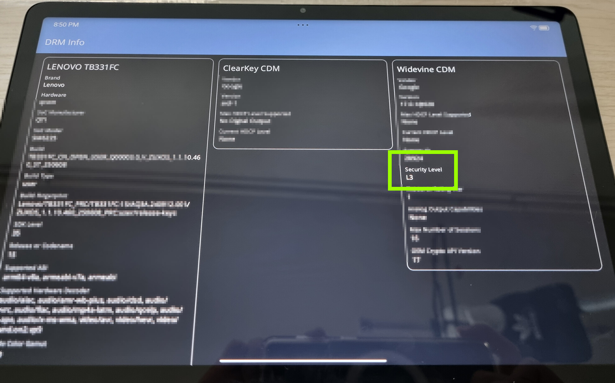 최종적으로 Widevine L1이라 표기되어 있어, 넷플 등 여러 VOD 서비스에 좋은 화질로 감상이 가능했으며,