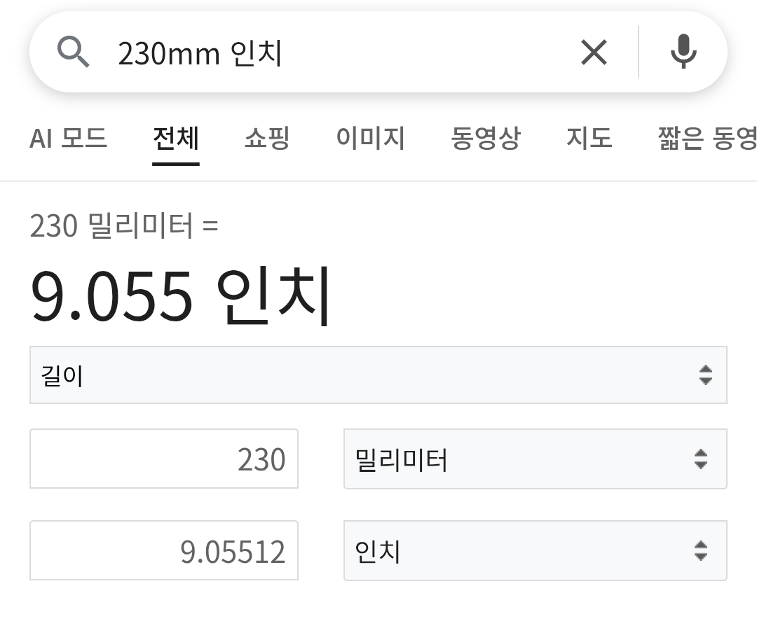 이 정도니깐 네모난건 14인치래도 짧은 변이 210mm고, 230mm 원형도 시도해볼만 할지도 라는 생각이 들어서 사봤어요 ㅎㅎ
