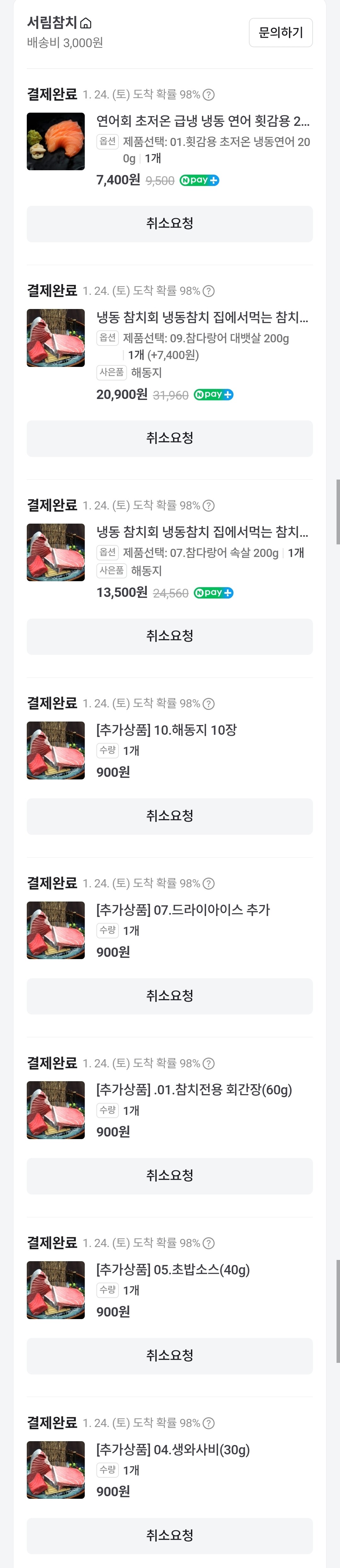최종적으로 어차피 해동할꺼면 걍 지금 딱히 소량 핫딜이 없는 연어도 같이 라는 생각에 왠지 합배가 되는 걸로 골랐네요 ㅋㅋ