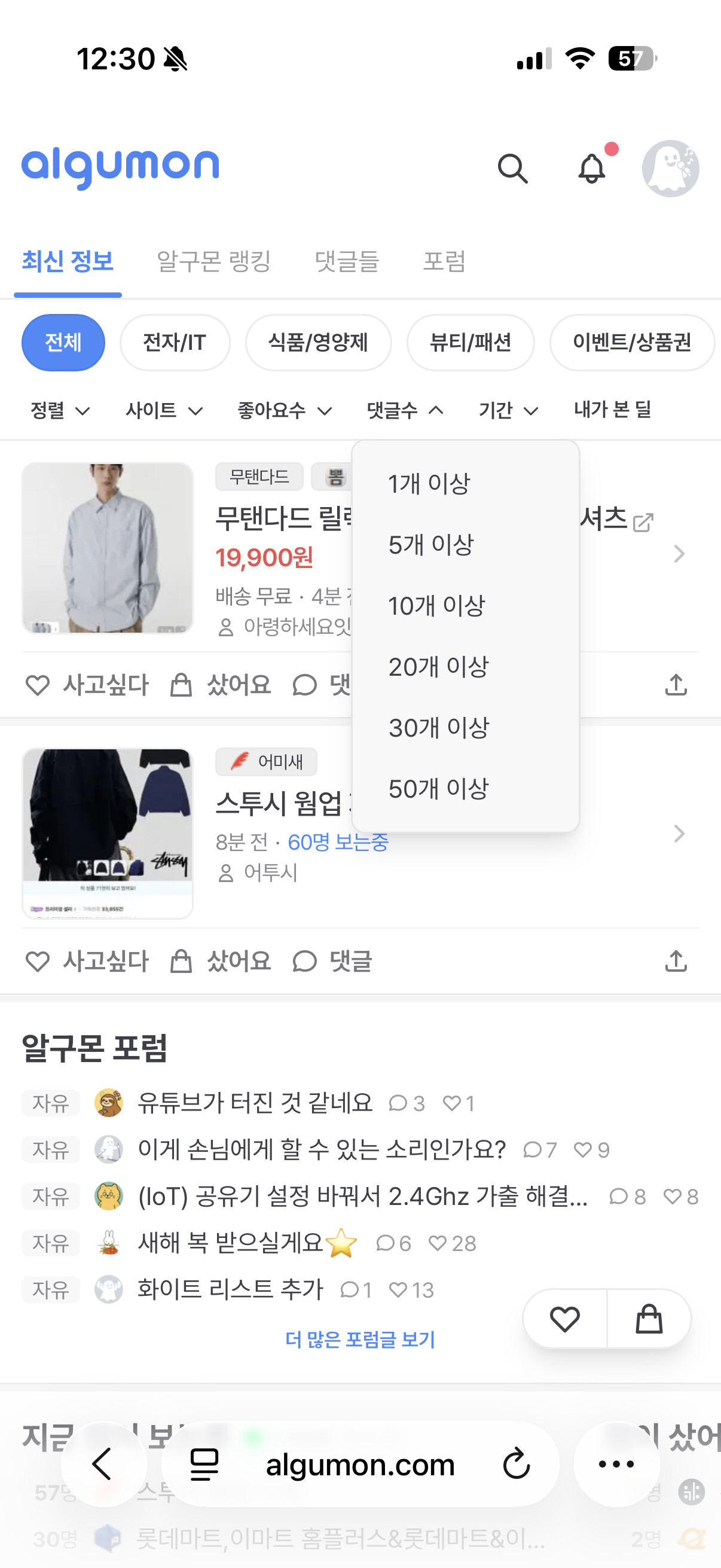 사파리, 크롬 둘 다 필터에서 댓글수 몇개 이상 이런거 눌러도 아무 반응이 없네요
