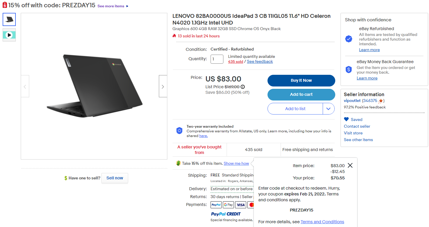 ps. 참고로 저는 $42에 구매했었고, 만족스럽게 사용중입니다. 큰 기대는 하지 마시고, "크롬북이란게 이렇구나"를 직접 경험해보고, "이거 귀엽네"라는 생각을 하면서 사용하고 있어요!