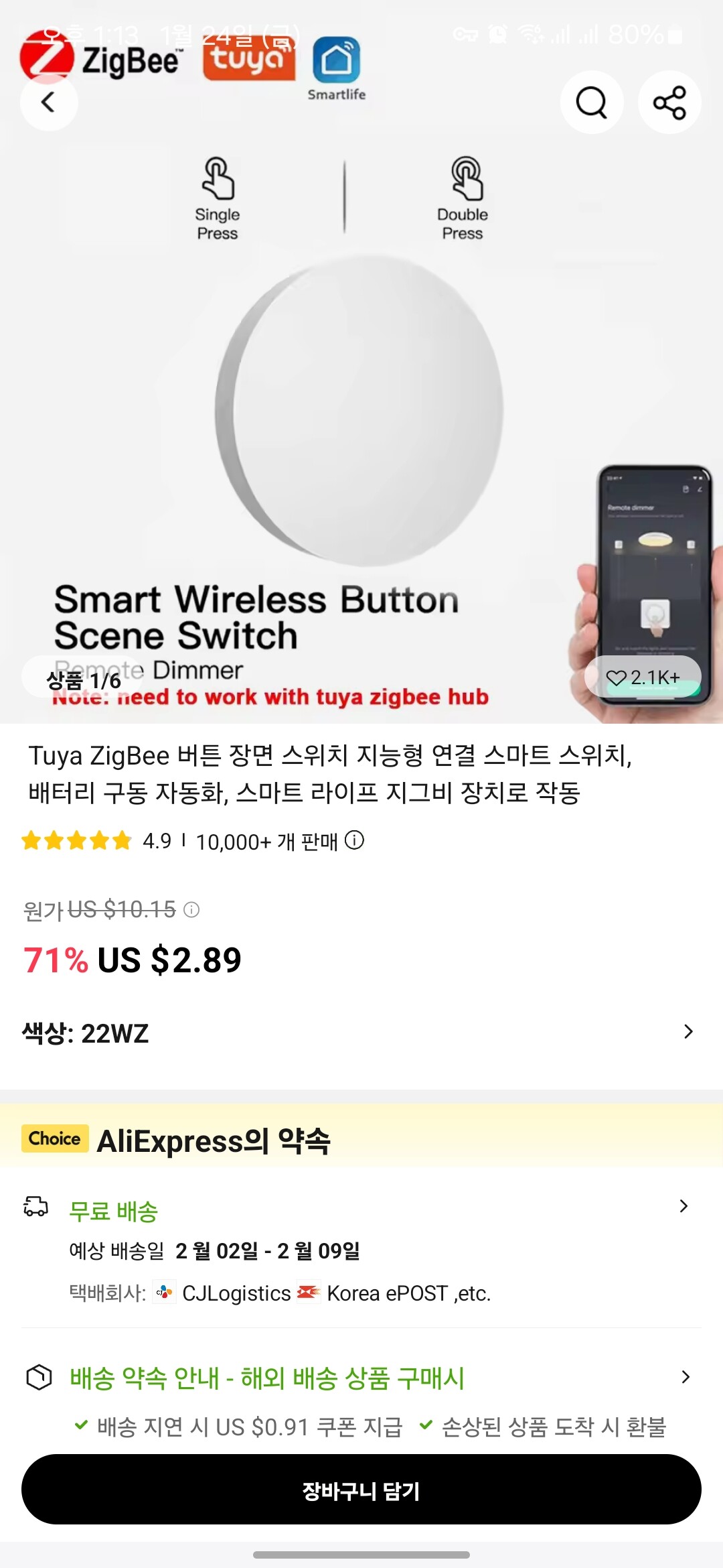 미니 스위치도 있고 요런 녀석도 있어서 맘에드는거 골라잡으심 되겠고요. 1번/2번/길게 누르기마다 각각 동작을 설정할 수 있어서 스위치 하나로 여러 기기 제어하는 것도 가능합니다.