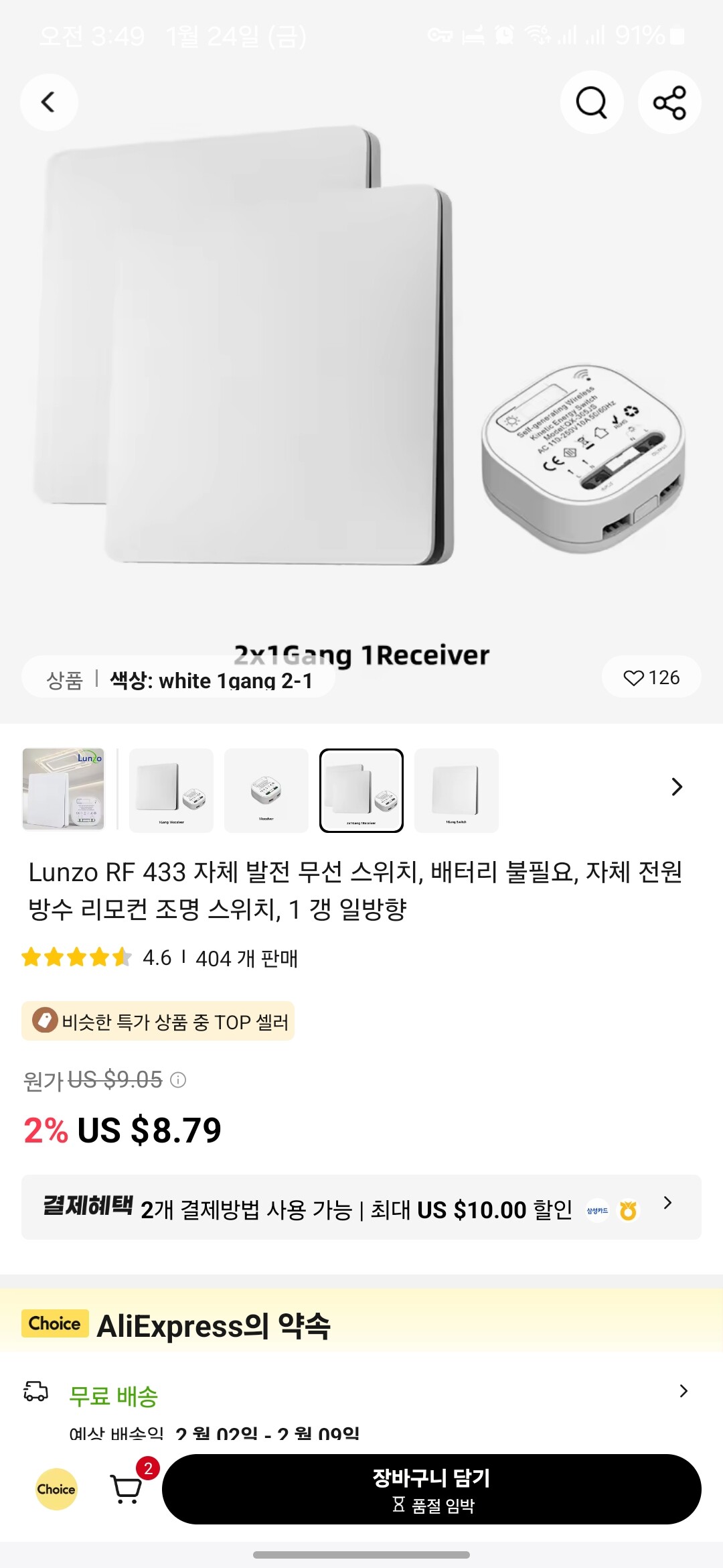 건전지 가는 것에 저항감이 없다면 배선 직결식으로 싼 거 아무거나 쓰시면 될 겁니다. 천원마트에서 rf switch로 검색하면 파란색 테두리가 있는 단추형 모델이 보일 겁니다. 스위치는 추가로 페어링 가능하니 모자라면 추가해도 되고 좀 뒤져 보면 리시버 1개, 스위치 2개 세트는 있습니다. 직접 써 보진 않았지만 Zigbee 기기들 보면 건전지 수명은 제법 길 것 같습니다.