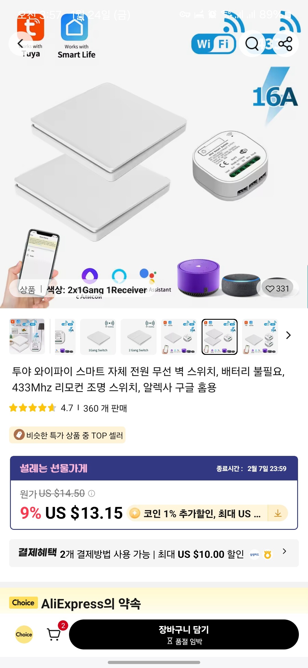 대신 그 단점 극복을 위해서 스마트스위치 전용 무선 자가발전 스위치를 여러개 사서 오히려 좋아 했어요.