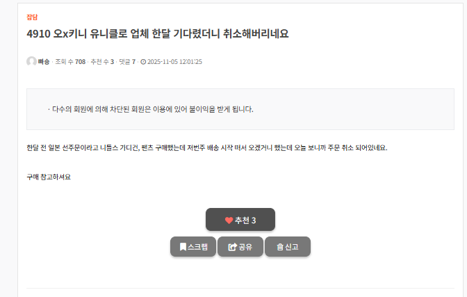 추가.저번에 한번당해서 설마했는데 이번에도 같네요…