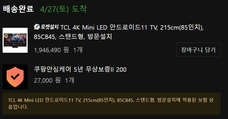 TCL 2년전에 쿠팡에 보험 먹여서 사서 아주 잘쓰고있어요