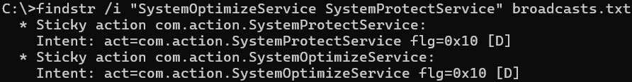 findstr /i "SystemOptimizeService SystemProtectService" broadcasts.txt
