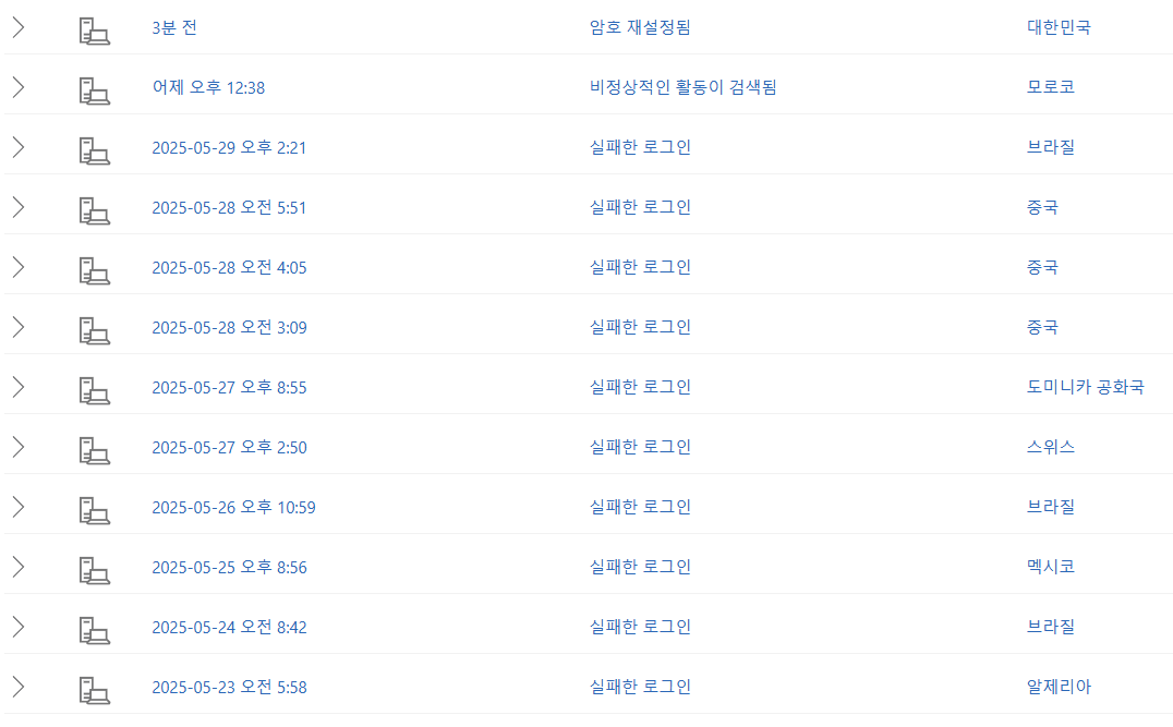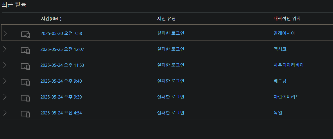 오늘 방금 microsoft 계정에 비정상적인 활동들이 감지됬다고 해서 내역 조회해보니까, 진짜더러라구요.