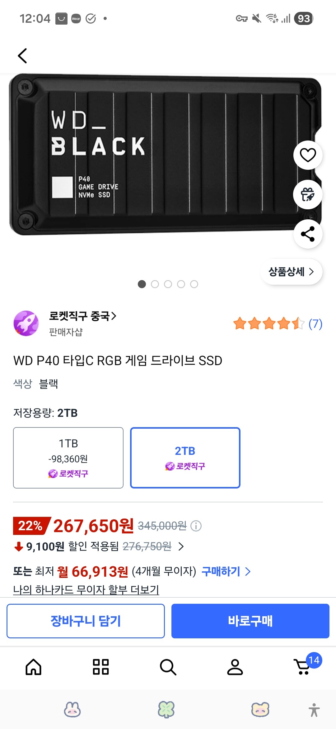 2테라에 외장으로도 2000mbps 나와서 좋은것 같네요. 다만 분해가 어려워서 외장 ssd그대로 사용하시는게 편하실듯 합니다.