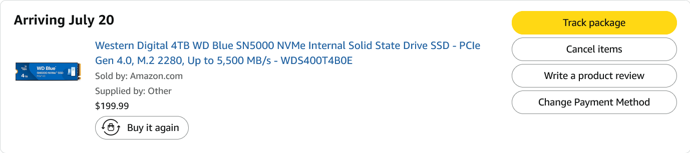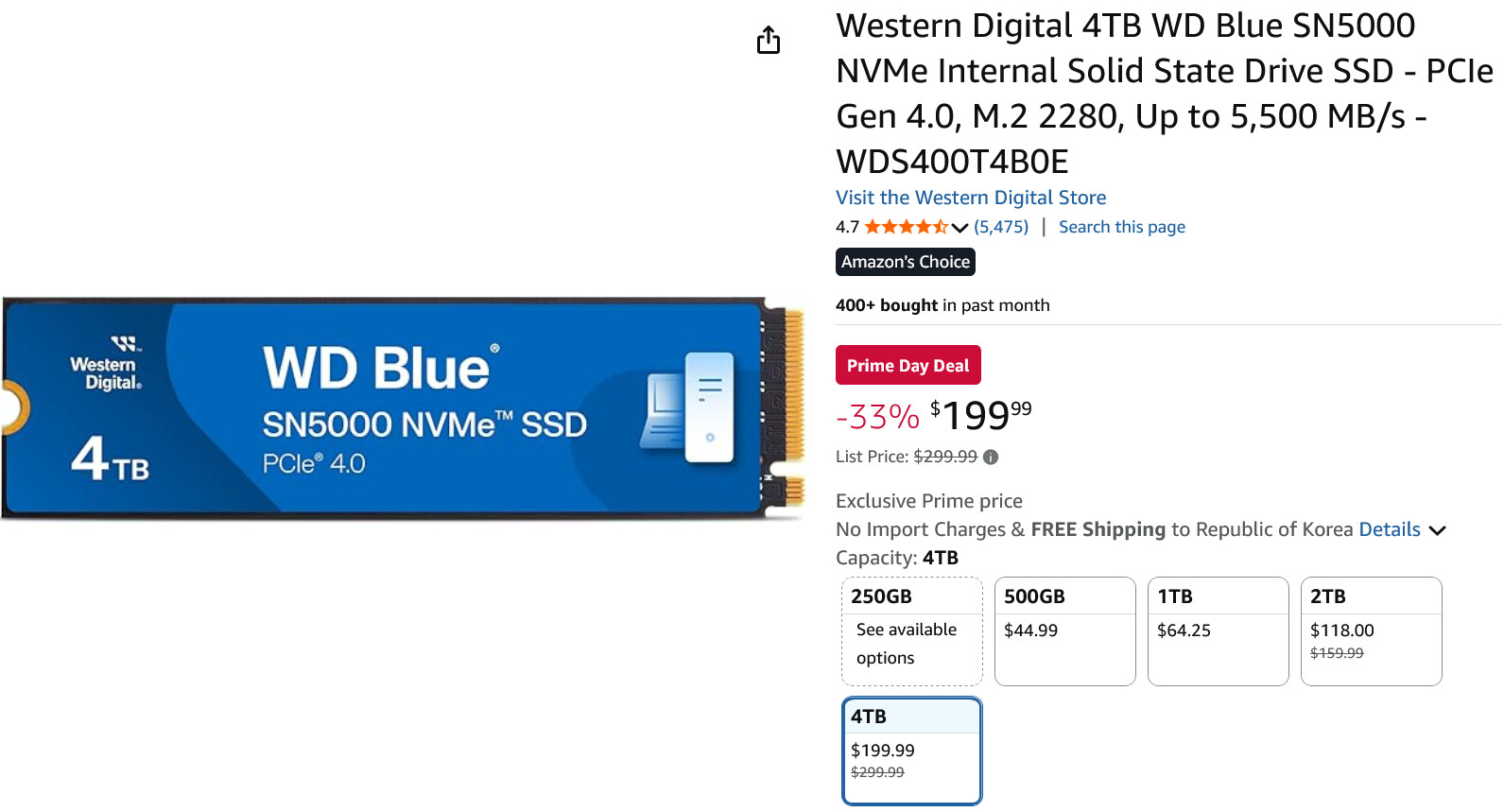 분명 엊그제 크루셜 P310 지르면서 확인했을 땐 $209였는데, 살짝 내려와서 부가세 없는 $199.99가 되었네요. 프라임 딜이라 아마존 프라임 가입이 필요합니다. 트라이얼 안 쓰셨다면 30일 맛뵈기 있을테니 고거 쓰시면 됩니다. (그리고 가입하자마자 바로 해지 걸어두시고요)