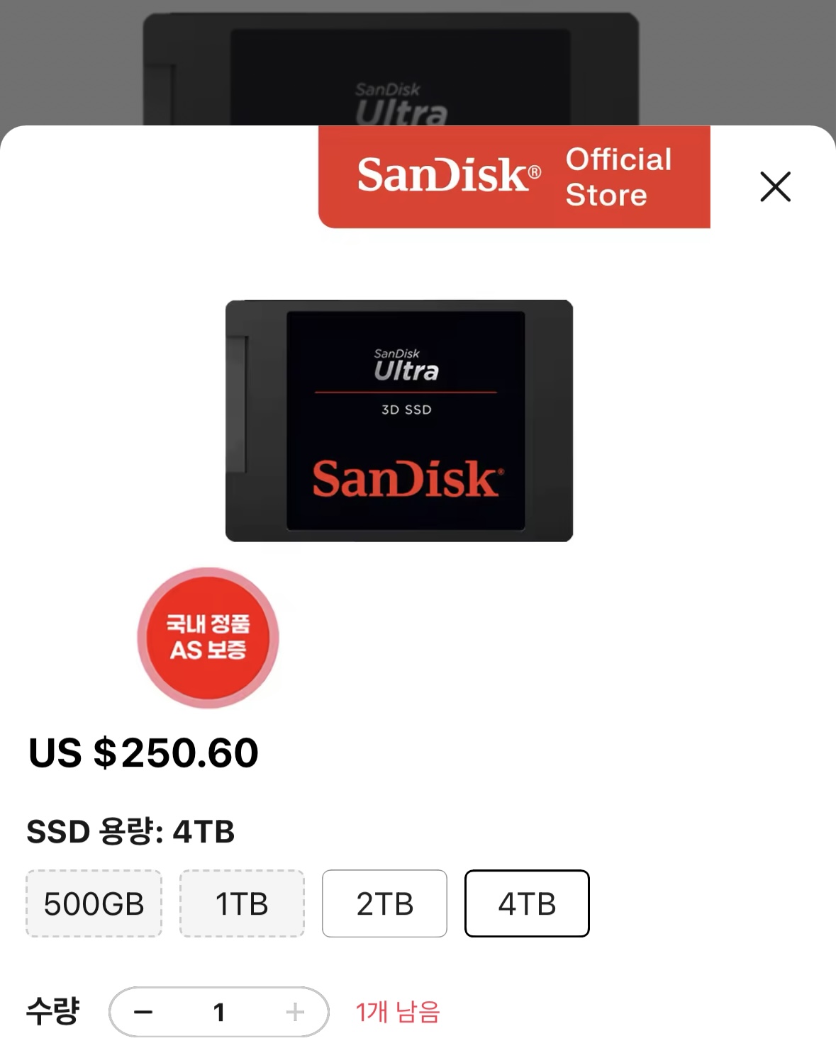 멸종 위기종인 TLC 디램있으 SATA SSD 4TB를 꽤 괜찮은 가격에 득