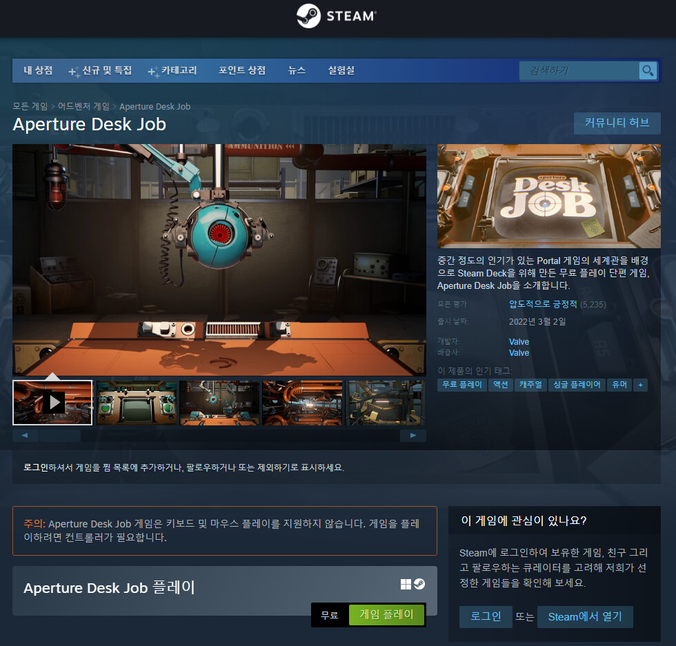이번에 스팀에서 스팀덱을 출시하면서, 홍보 및 기능숙지 용 게임을 함께 출시한 것 같습니다.